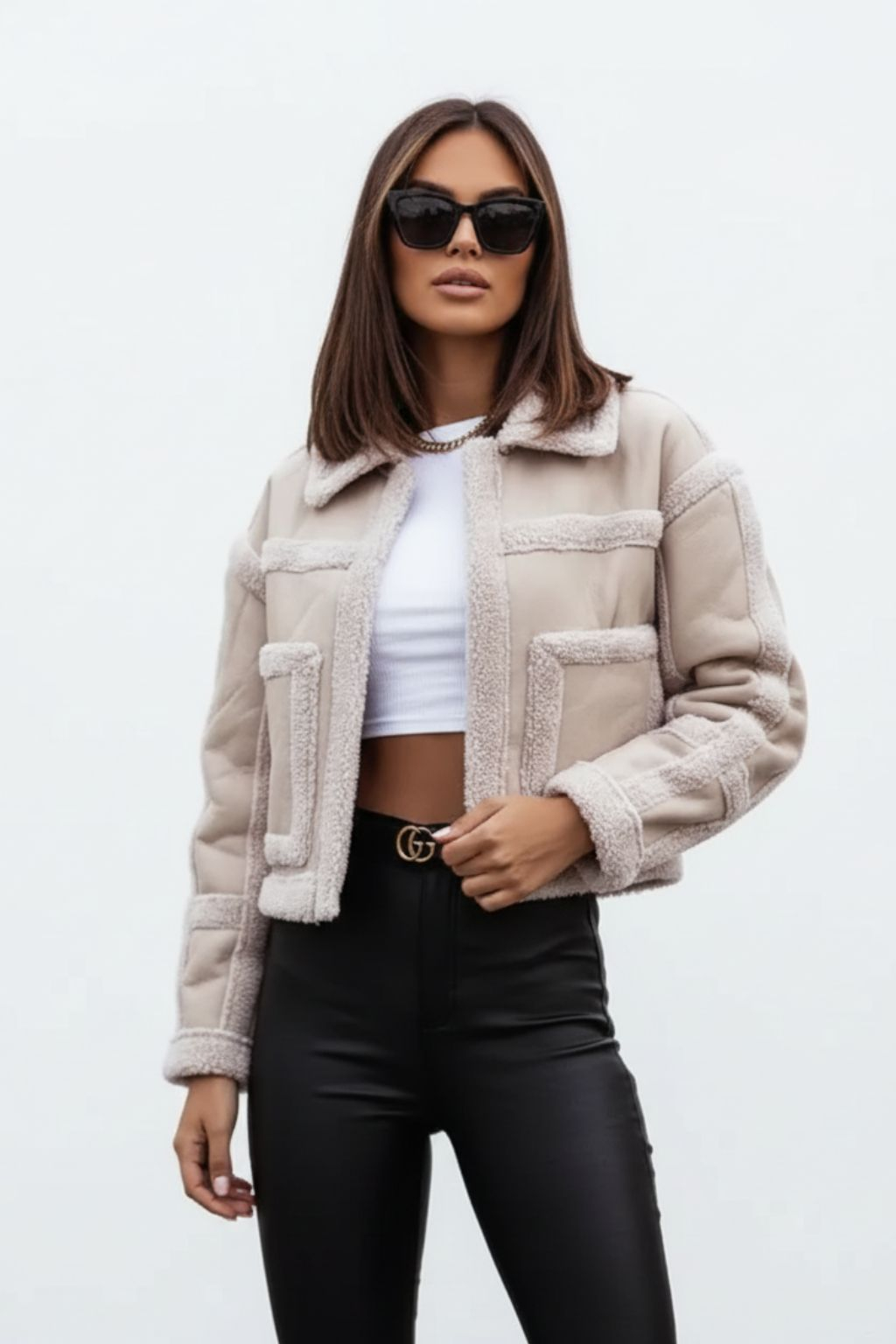 Fur long sleeve coat