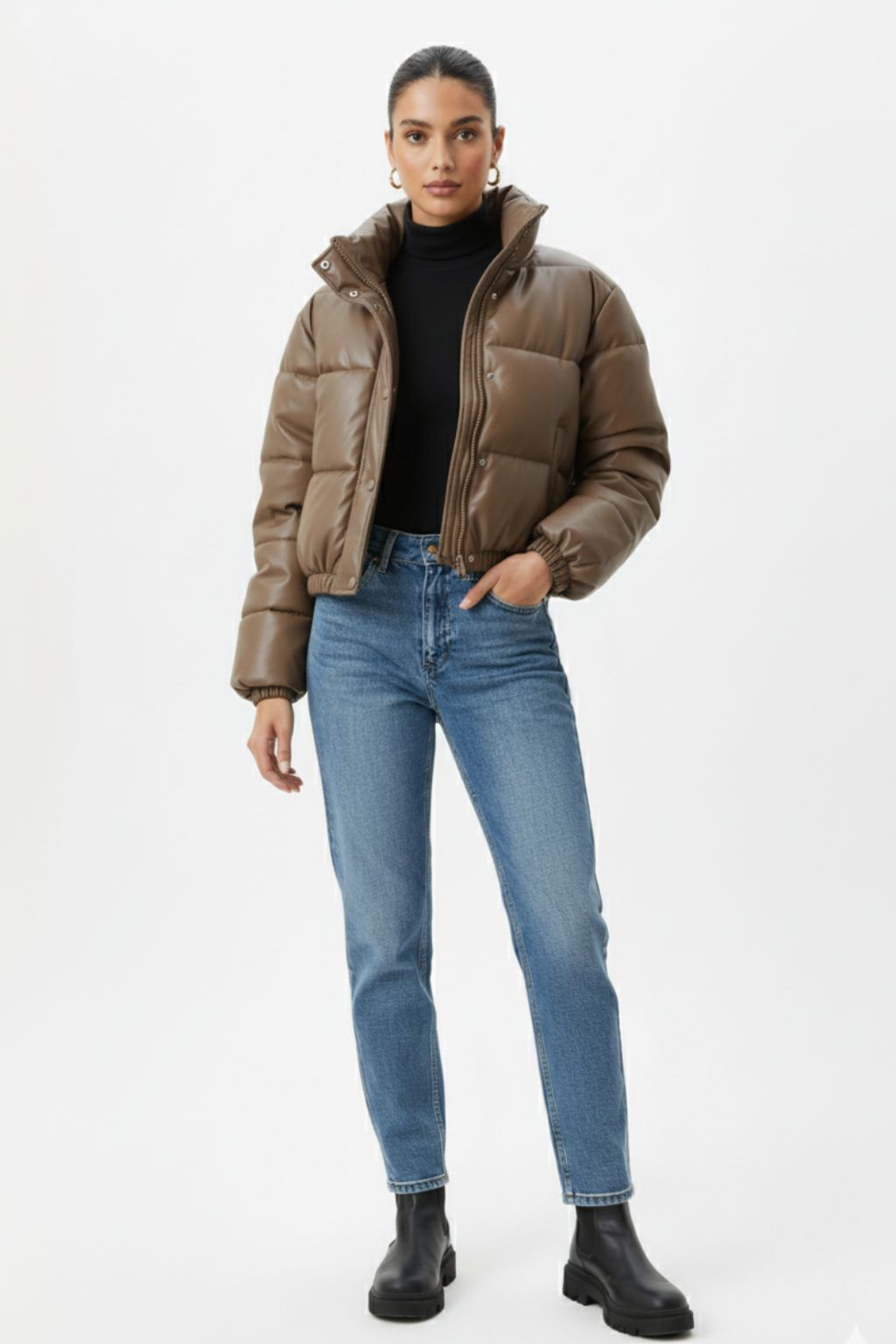 Stay warm and stylish in this Padded Polyester Puffer Jacket. Made of 100% Polyester, this jacket is perfect for cold weather with its down insulation. The simple design and stand collar add a touch of elegance, making it suitable for any occasion. Stay cozy and chic all season long.